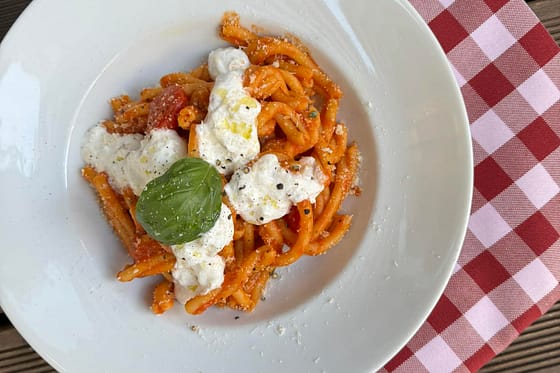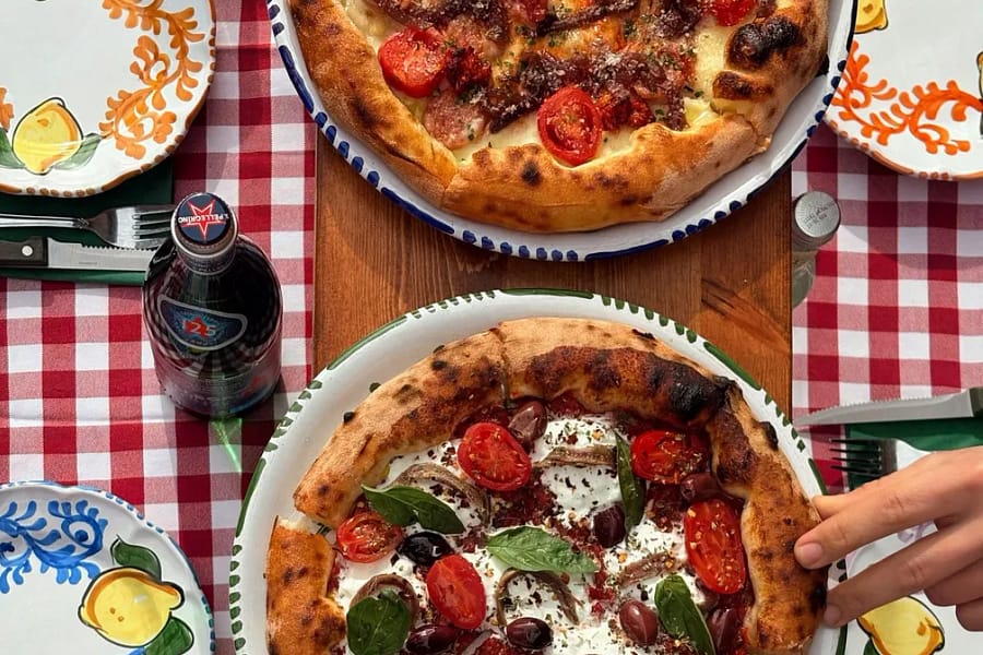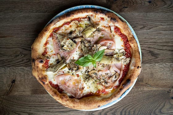 Vi serverer napolitansk pizza, pasta og italienske desserter.